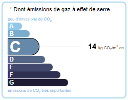 Émissions de gaz à effet de serre pour le chauffage, la production d'eau chaude sanitaire et le refroidissement.